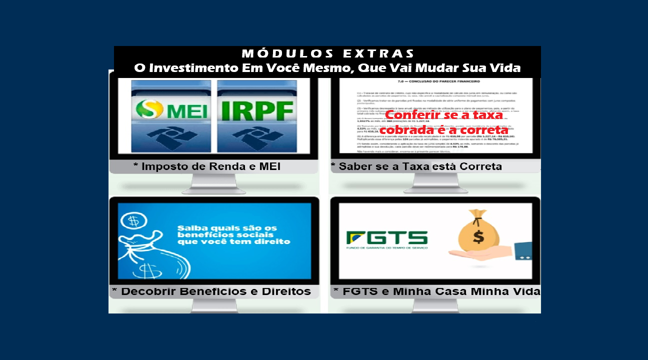 Ah, e mais uma coisa, sou correspondente bancária certificada. Podemos analisar possíveis reduções nas dívidas, e vários alunos já foram beneficiados com a redução do consignado.